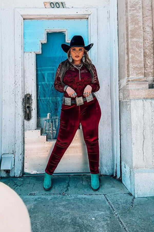 Burgundy Velvet Skinny Jeans Plus Size (28in Inseam)